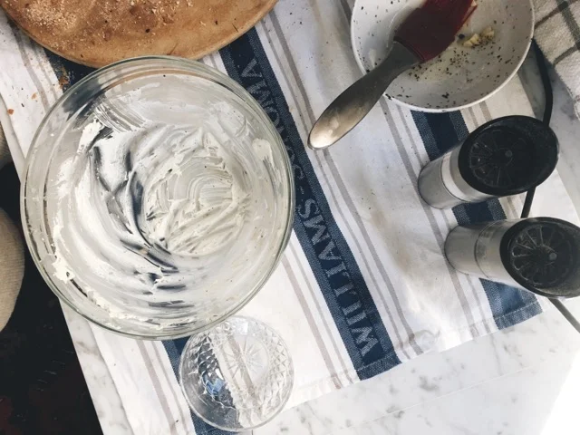 Part 2: goat cheese mousse: in a medium mixing bowl combine the goat cheese, ¼ cup of olive oil, ¼ cup of milk, salt, pepper, Italian seasoning to taste and whip until creamy. *note: best of goat cheese is at room temperature before mixing