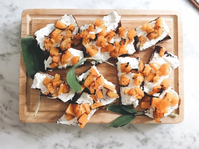 Enter… butternut squash goat cheese mousse crostini. A recipe of my very own inspired by various pinterest and food network findings.