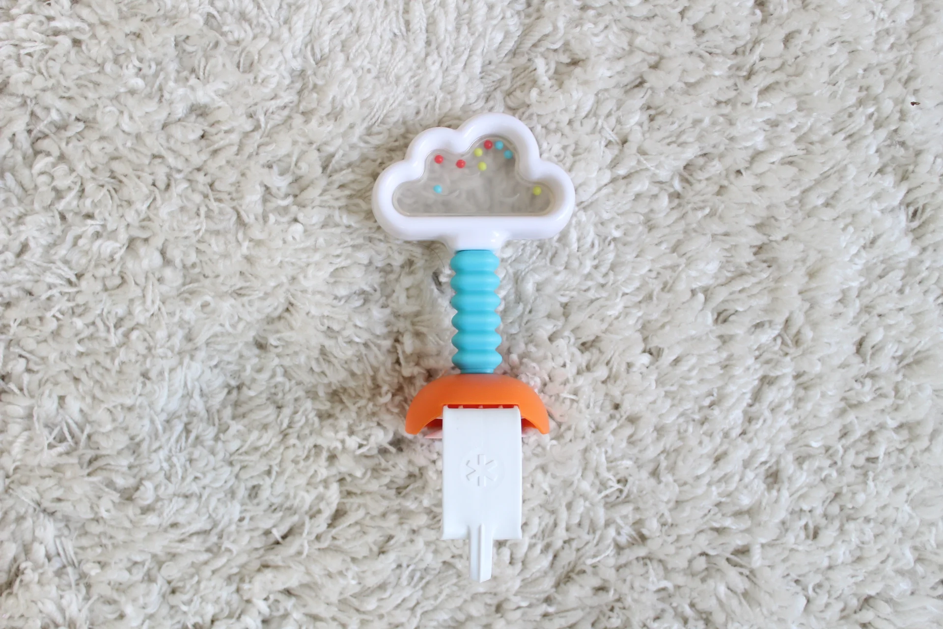 - We are always on the go and I am finding more and more than he can engage with will sitting in the car seat or in an airport. I bought this Infantino monkey rattle early on and it’s great because it’s a teething ring and rattle (again with the multi purpose).